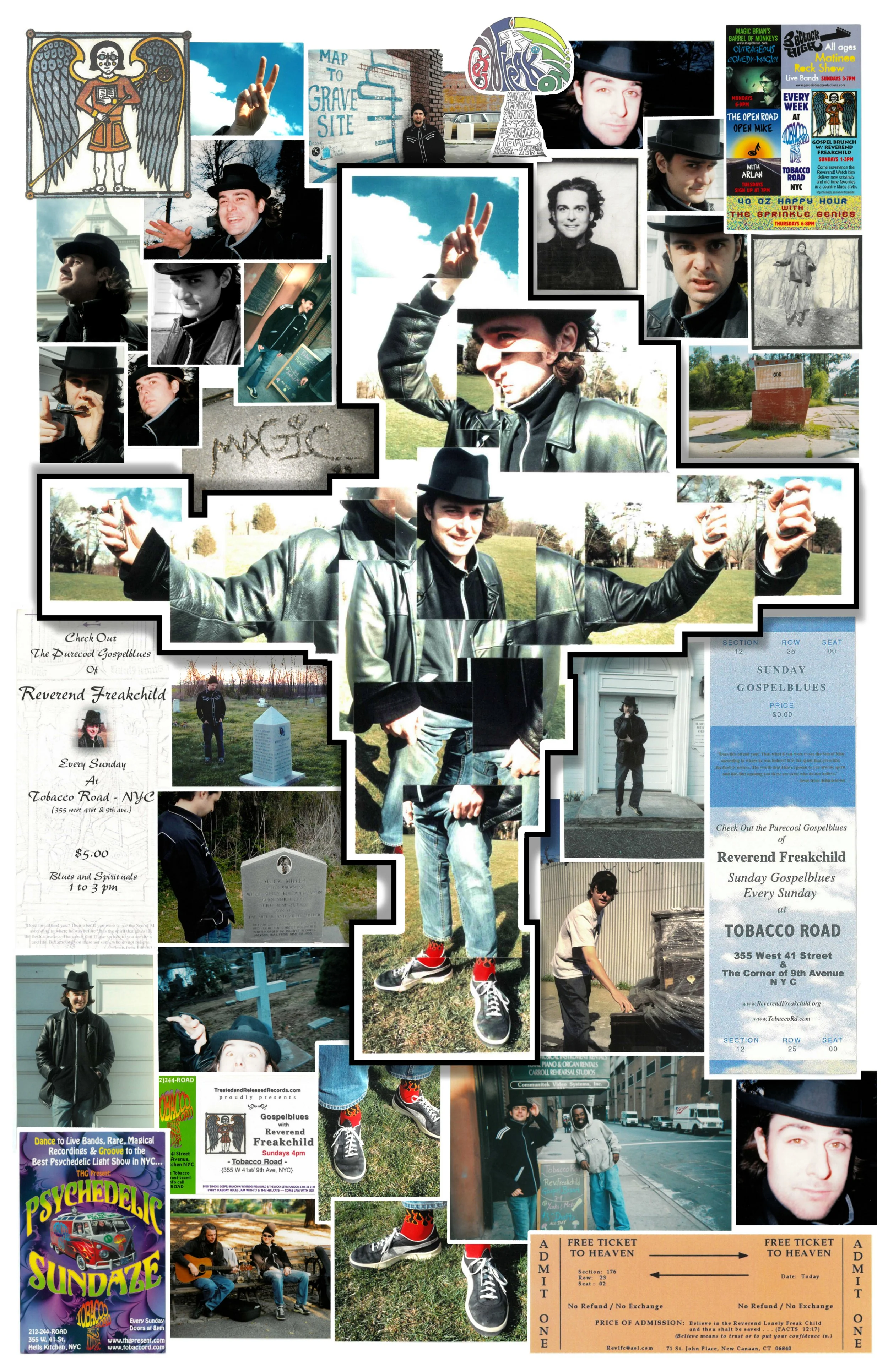 Back when tigers used to smoke the Rev regularly haunted the front room of Tobacco Road in New York City with a solo set of music almost every Sunday afternoon at 4:20pm. Here during these unsung days he was able to hone his craft and performed many of the songs that appear on the albums, ‘Blues & Spirituals’ and, ‘Hymn Hustler.” Like a cross between a sacred psychedelic clown and a serious storefront preacher, the Rev stared down mortality and courted redemption with rhythm and melody. Sitting on his amplifier in the corner of that hippie hangout, his acoustic guitar and voice echoed blessings for that internationally known little counterculture musical mecca in the heart of Hell’s Kitchen. Tuning into the timeless with just a song sometimes the spirit would descend and it was as if the Rev and his audience would levitate right off the earth.